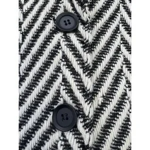 A cool fall statement coat in a captivating chevron stripe. With a button front, a classic notched lapel, and essential side pockets.