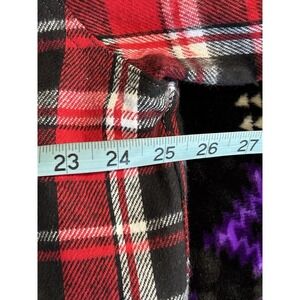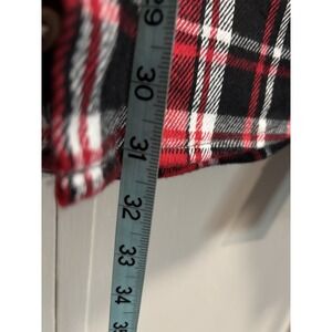 The NWT Field & Stream Plaid Flannel Heavyweight Shacket Button Up in Size XL is a versatile and practical piece for outdoor enthusiasts. It is 25.5" pit to pit and 32" length. Made from warm and breathable cotton flannel, this shirt/jacket features a classic spread collar, button closure, and multiple pockets for convenience. The plaid pattern adds a touch of Western flair, while the black, red, and white colors make it suitable for various occasions such as travel, casual outings, and workwear. With its heavy weight and all-season design, this shacket is perfect for tackling the cold weather in style.