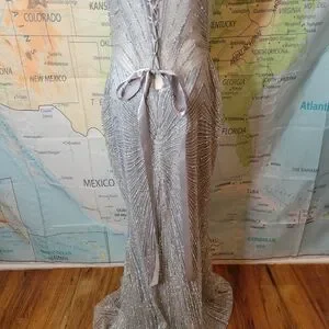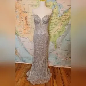 Alglist Silver Beaded Strapless Dress Lace Up Back Size 8