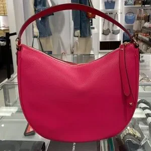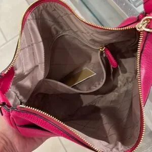 Michael Kors Dover Large Leather Top Zip Half Moon Shoulder Bag in Electric Pink