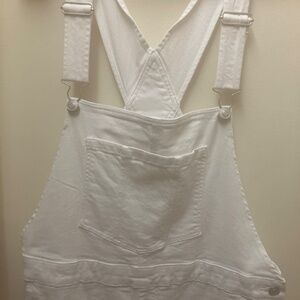 Woman’s Jean Shorts Overalls Super Comfy Size XL(15-17) But Definitely Can Fit A LG They are White and have Pockets on the sides as well as one in the front,back pockets as well NWT