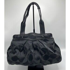 Coach Signature Sateen Garnet Satchel Shoulder Bag in Silver/Black. No F13906.