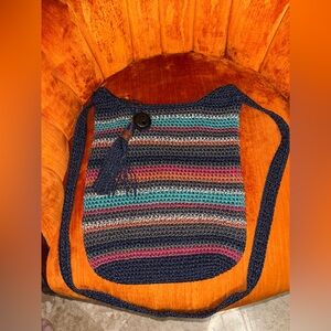 The Sak Crochet Shoulder Bag Strap Tote Striped Multi Color Boho Purse