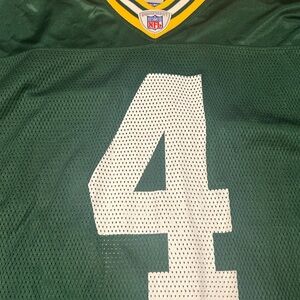 Authentic Reebok NFL jersey. Mesh fabric for breathability. The great Brett Favre #4. This jersey is in immaculate condition. I couldn’t find a problem during inspection. It’s really nice. Green Bay Packers.