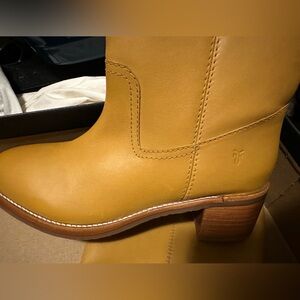 BNIB never worn Elegant banana boots by Frye and co. Frye & Co. is a more affordable, accessible sister brand to the iconic Frye, using similar heritage styles but often incorporating more synthetic/vegan leathers and materials for lower price points. Ideal for versatile wear. In perfect condition, so sad to sell but were a little bit too big for me! Got a good price on them so offers considered, just still trying to get my cost back and make a little profit if possible!