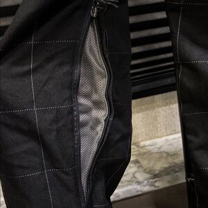 Betty Rides Snow pants. Black and white plaid. Flare leg. Zipper pockets. Adjustable waist. Leg vents. 10,000 MM waterproof. Fully lined. Women’s size Large.