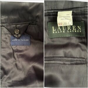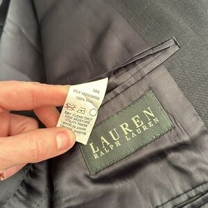 Ralph Lauren dark gray lightweight wool suit. Pants have about 3.25-3.5” hem so there is room to let down length. Excellent condition. Worn only once for a special occasion. Smoke free home