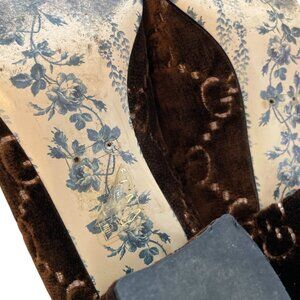 Pre-owned. No major flaws. Upper is in great shape. No scuffs or stains on velvet. Soles are heavily scratched. Metal Gucci emblem on soles has fallen off. See all images for exact condition.