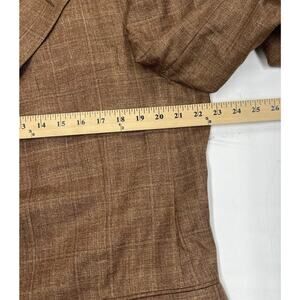 Hickey Freeman Mens 44L Brown Silk Linen Wool Plaid Sport Coat Jacket Blazer