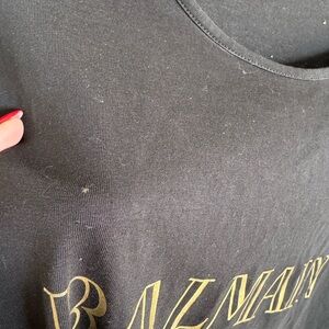 Stylish Balmain muscle tee in black. Features bold gold buttons on the shoulder. Perfect for a modern look.
