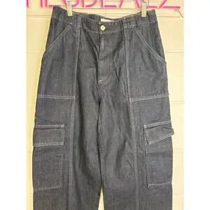 New AG Adriano Goldschmied x EmRata Amia High Rise Wide Leg Cargo Jeans 32 (14)