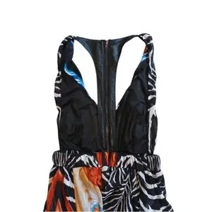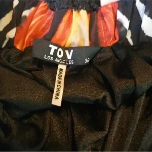 This stunning halter maxi dress features a vibrant mix of blue, black, and red hues. Perfect for making a statement at any event. Tie me up TOV holy Los Angeles racer back dress . In perfect condition