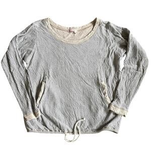 Fresh Produce Boat Neck Long Sleeve Gray White Stripe Shirt Top Size Medium