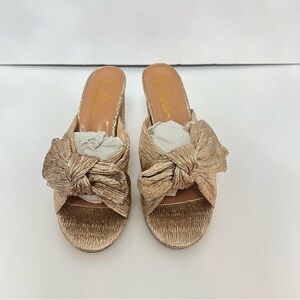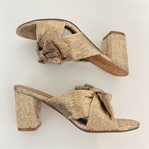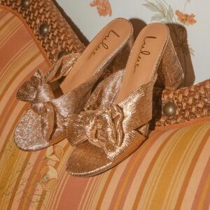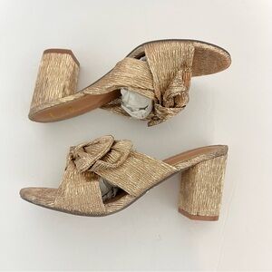 Lulus Dorthea Rose Gold Knotted High Block Heel Sandals - New In Box - Reemoly