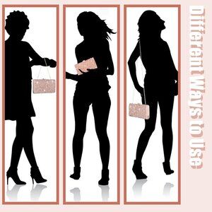 Features: Glamorous rose gold rhinestone clutch with a spacious interior perfect for your essentials like phone, lipstick, and keys. Includes a detachable long chain and short chain so you can wear it as a crossbody, shoulder bag, or handheld. The elegant rhinestone jewelry set features a tassel necklace, stretch bracelet, and dangling earrings, all shining beautifully under light. Ideal for turning heads at parties or special occasions.
