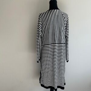 Cabi Black White Stripe Long Duster Cardigan Sweater Open Front Size L
