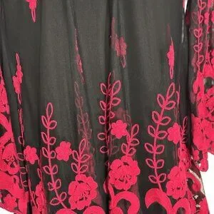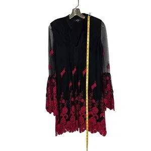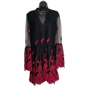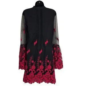 Black & Red Embroidered Long Sleeve Tunic Dress By Niza Size 38 Sheer Sleeve