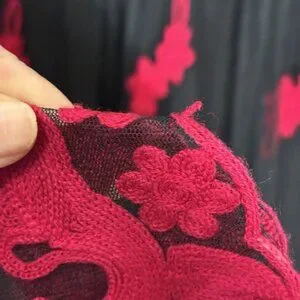 • Vibrant red floral embroidery stands out beautifully