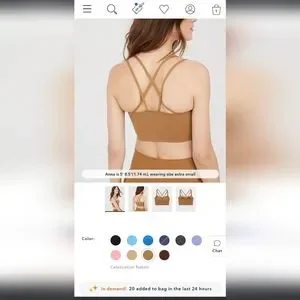 Offline Hold Me Up bra. Cute sports bra with strappy back in a warm brown color. Comfortable and supportive. No pads, but the bra is thick so you don’t need them.