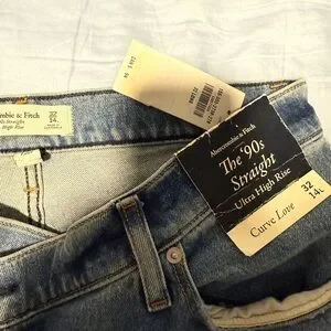 Abercrombie & Fitch The ‘90s Straight Ultra High Rise Blue Jeans Curve Love