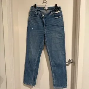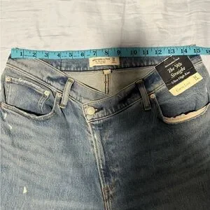 Ultra high rise jeans in a classic blue. Perfect for everyday style. Curve love and asymmetrical button. 15” flat across waist, 11” rise, 32” inseam