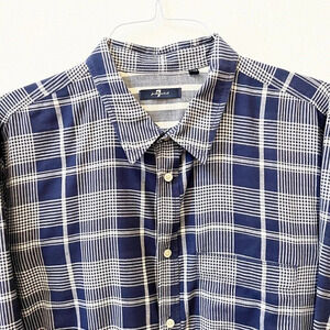 7 for All Mankind Mens Navy Blue Plaid Button Shirt XL Long Sleeve Cotton Collar