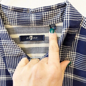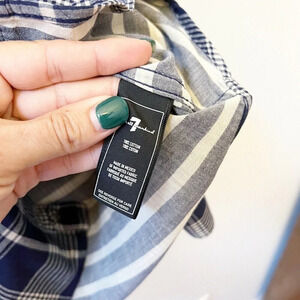 7 for All Mankind Mens Navy Blue Plaid Button Shirt XL Long Sleeve Cotton. Nice thicker cotton material.