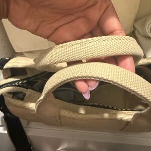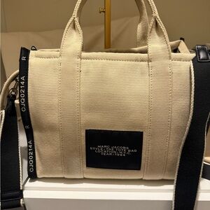 Elegant cream tote with bold black accents. Features sturdy handles and iconic branding. Ideal for daily essentials.