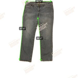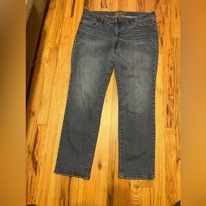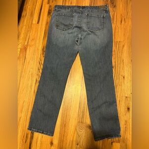 Flattering high-waist slim/straight leg in a classic mid-wash. Perfect stretch for all-day wear. Effortless, comfortable denim that's easy to style. Size 14