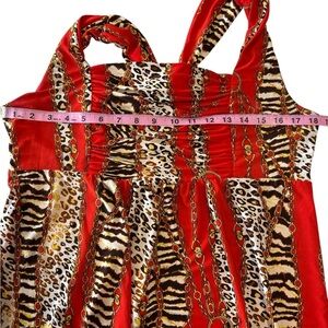 Women’s Maxi Dress Cut Out Gold Chain Lock Animal Print Red Mob Wife Large