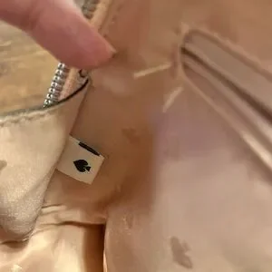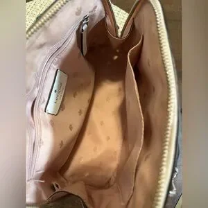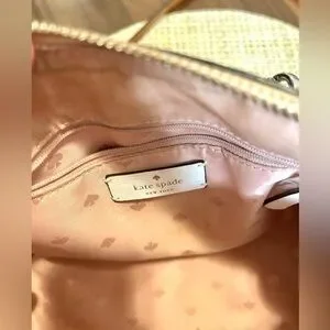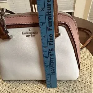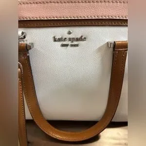 Small Kate Spade White and Pink Satchel with Brown Accents.