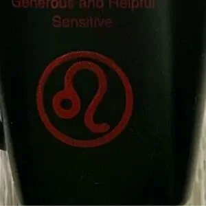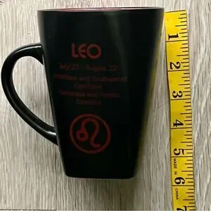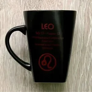 Fisher Home Products Leo Zodiac Mug/Coffee Cup 16oz - RARE Elegant black mug featuring a striking red Leo design. Ideal for astrology lovers.