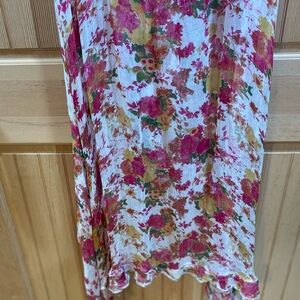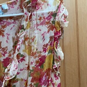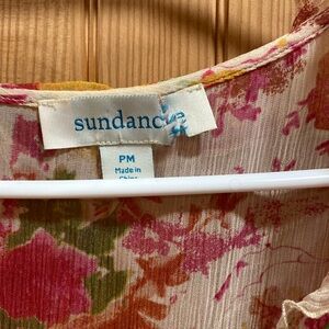 Bright floral vest with a playful ruffle design. Ideal for adding color to any outfit. The Sundance label has been cut but can be stitched up.