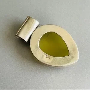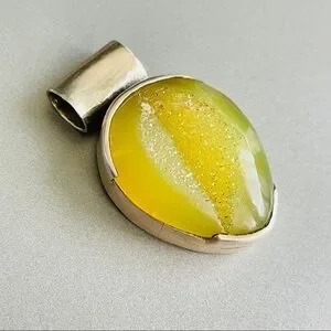 Natural Yellow Druzy Stone Sterling Silver Teardrop Pendant Vintage