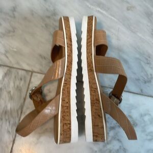 Marc Fisher women’s tan platform ankle strap sandals size 8.5 great condition