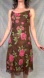 Brown silk slip dress sundress bias cut slipdress adorned with a pink and gold roses rose flower floral print. This midi-length dress features delicate spaghetti straps and a flattering draped cowl neckline. 100% silk. Gently used preowned condition.