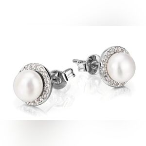 Beautiful pearl and lab created white sapphire stud earrings. Sterling silver. Brand new. Never worn. These would make a great gift!