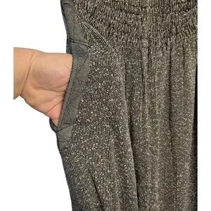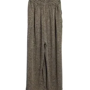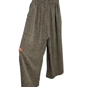 Wide-Leg Cropped Gray Textured Pants Elastic Waistband Pockets XL