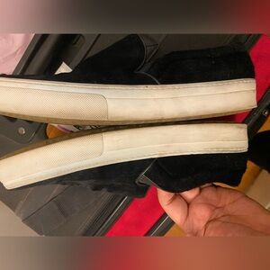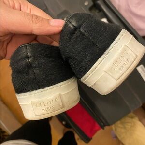 Elegant black Slip On Sneakers with white soles. Easy slip-on design. Ideal for everyday wear. From Phoebe Philo era