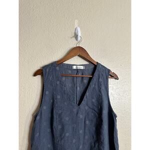 Cut Loose 100% Linen Polka Dot Midi Dress Grey Blue Lagenlook Womans Large