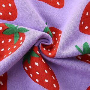 Featuring a vibrant strawberry print on a purple background,this sweatshirt is both cute and fashionable.The unique design makes it a standout piece in any wardrobe.