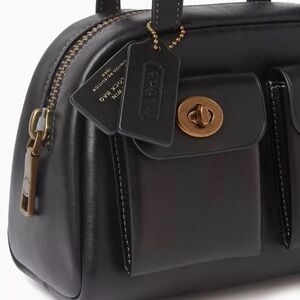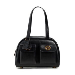 Coach Twin Turnlock Bag 20 Satchel in Dark Brass/Black Waxed Smooth Leather NWT