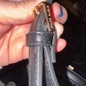 Chic mini bag by Anne Klein. Features sleek black design. Gold accents add elegance. Perfect for any outfit.