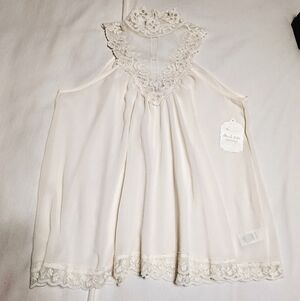 Altar'd State Lace Sleeveless Blouse Beige Medium