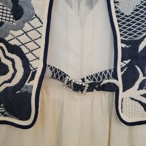 Cache Vintage Tapestry Vest Jumpsuit One Piece 80S Rhinestone Studded Mesh Panel