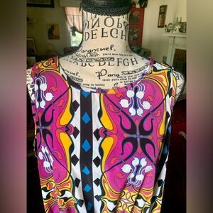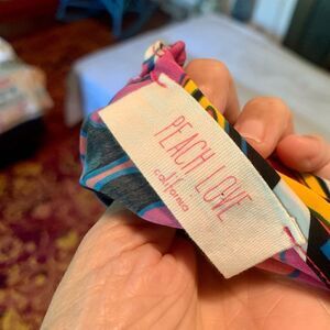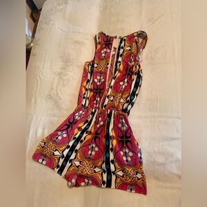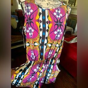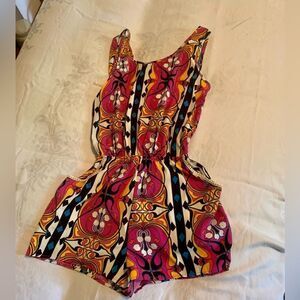 Peach Love of California sleeveless romper in vibrant happy colors! No size tag but the item measures like a size small.