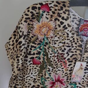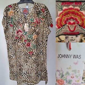 $295 JOHNNY WAS XL NEW LEOPARD EMBROIDERED MAISIE TUNIC DRESS extra large NWT