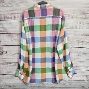Elevate your wardrobe with this stylish Paul Fredrick pure linen button-down shirt. Perfect for adding a touch of class to any outfit! This shirt features a vibrant multicolor check print, offering a unique rainbow of colors that will surely catch the eye. Made with high-quality linen, it provides both comfort and breathability, making it ideal for any season.