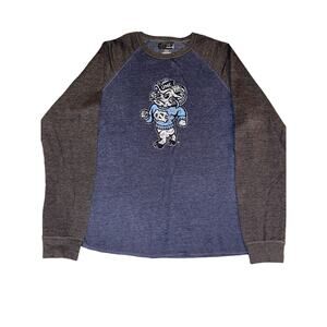 Get ready for game day with this stylish Majestic North Carolina UNC long sleeve sweatshirt. Featuring the team's iconic Ram logo on a gray jersey fabric, this shirt is perfect for any Tar Heels fan. Made for men, this shirt is a size large and has a comfortable fit. Ideal for football season, this sweatshirt is a must-have for any North Carolina fan looking to show off their team spirit. Whether you're at the game or watching from home, this shirt is the perfect addition to your game day outfit.