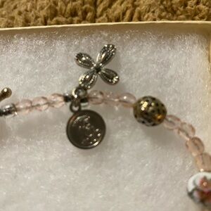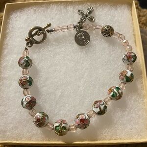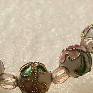 Beautiful Floral Beaded Cloisonné Bracelet with Pink and Green Accents